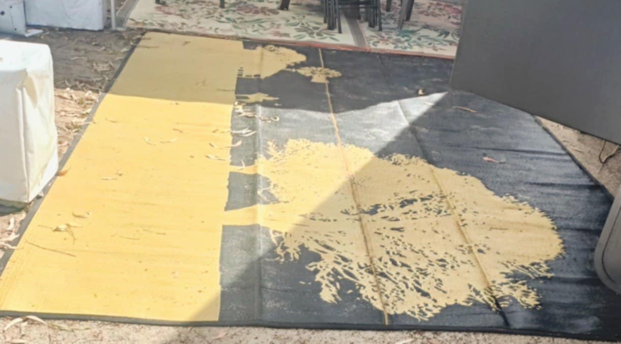This photo is taken of another Australian companies recycled poly mat. Mat was originally orange and black but due to incorrect use of UV stabilization the mat has faded and is breaking down along the seams and fold line.