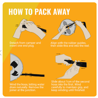 Traditional 32mm grey water hoses are very bulky, this unit saves you a considerable amount of space in your storage bay, is ridiculously durable and super simple to set up and pack away.